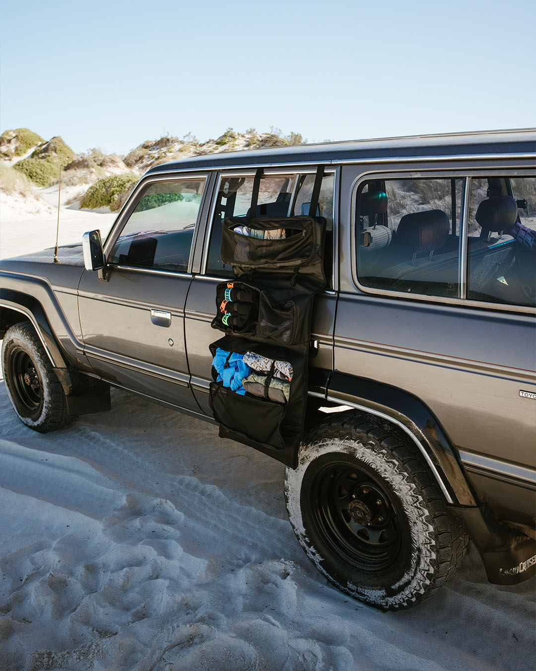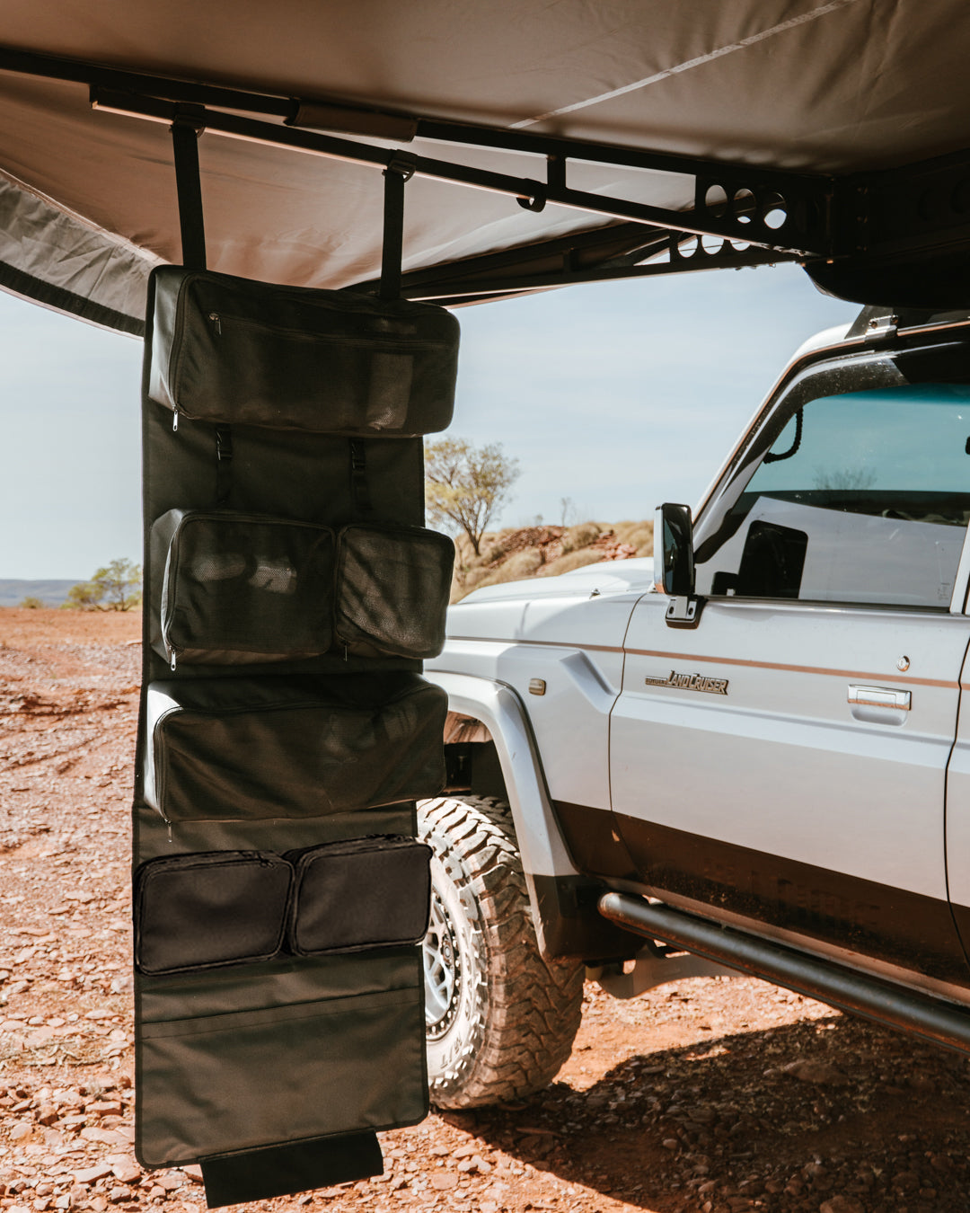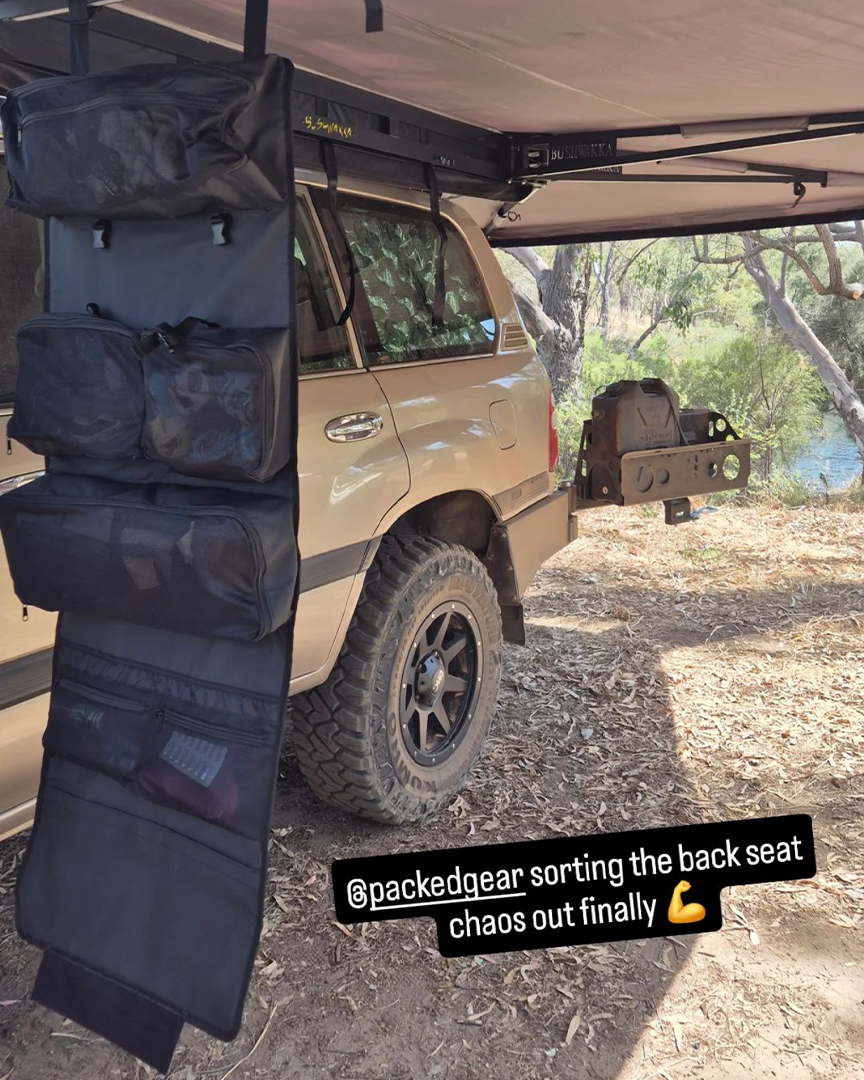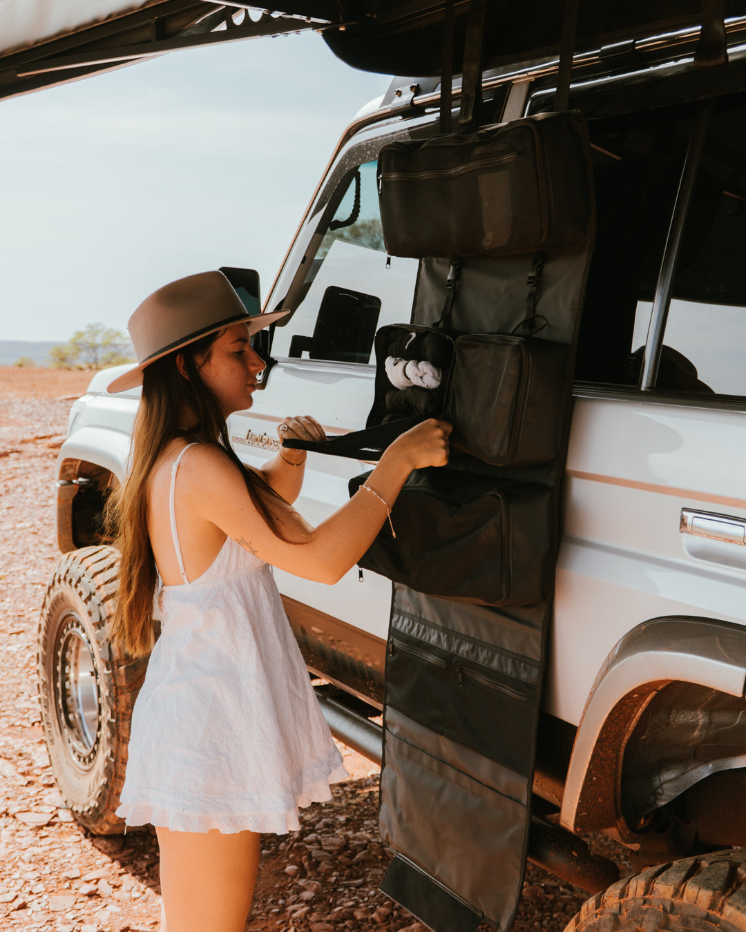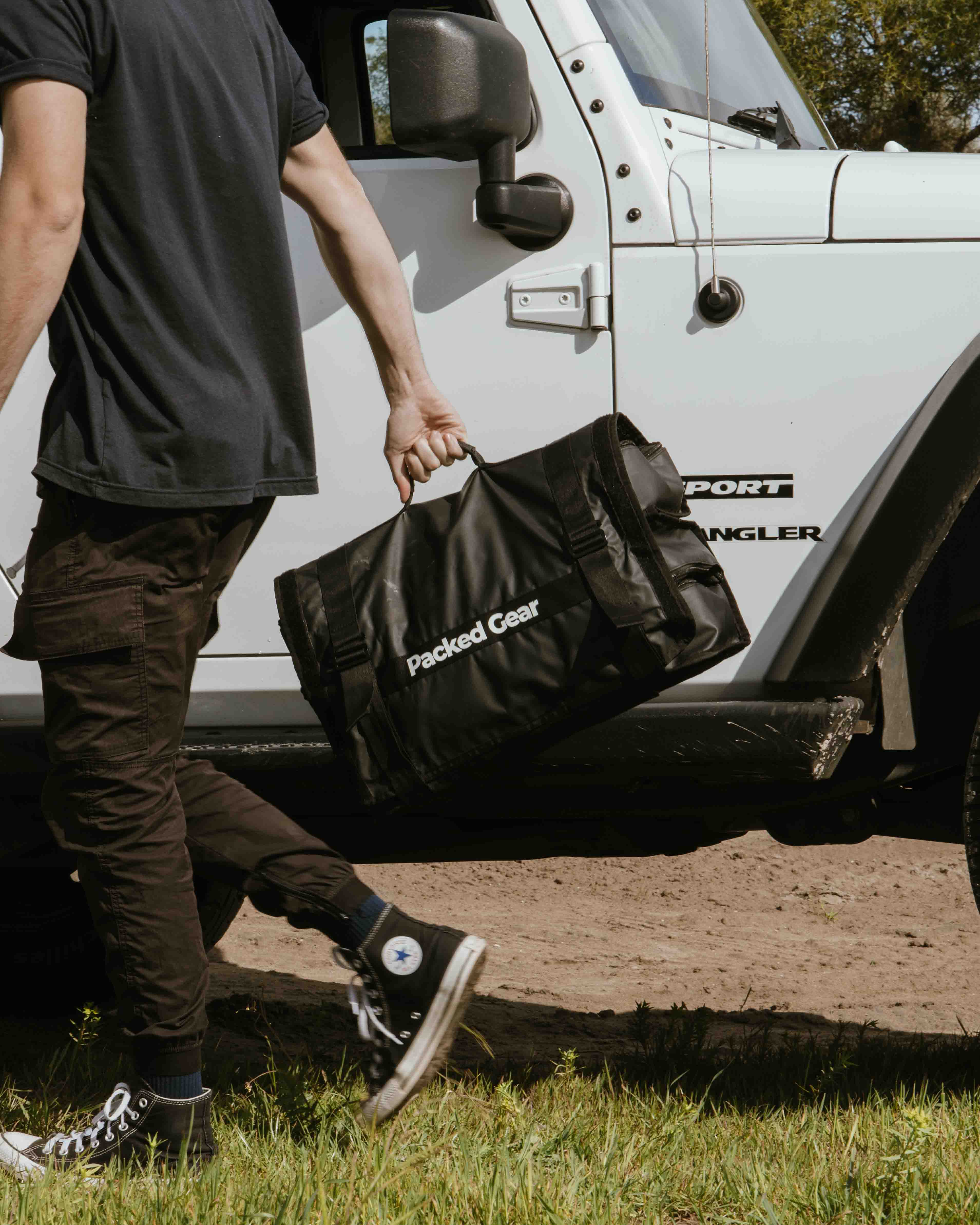 We’ve SOLVED gear organization for adventurers. The PackedGear Roll Up Closet unrolls from a carry-on-sized duffel into a full hanging closet. With metal G-hooks and an included headrest adapter, you can hang it off your seat, under an awning... Hang it anywhere. Built-in dividers keep everything in place, so you’re not digging through a black hole for clean socks. Made from durable, waterproof PVC and reinforced with heavy-duty nylon webbing, so stuffing your closet as full as you can is no problem.